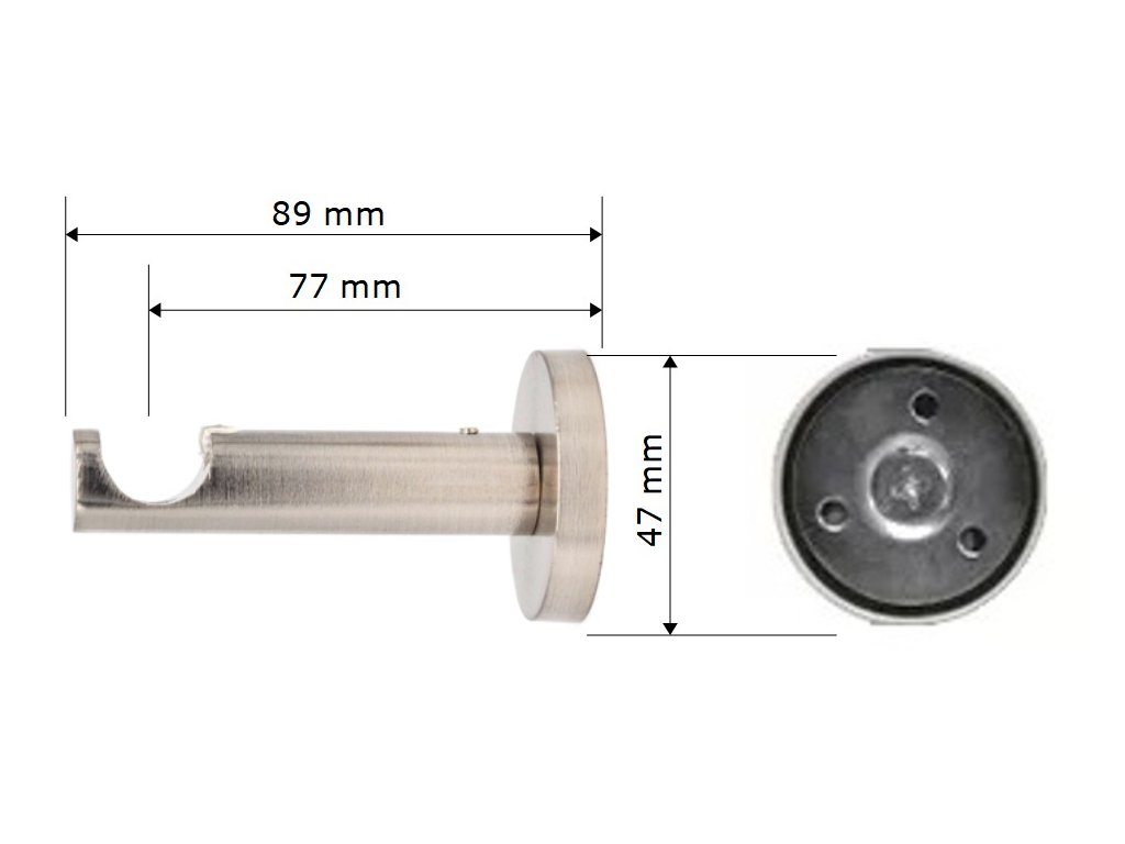 Jednoduchý stěnový nosník pro garnýže průměru 19 mm modern. Dodává se v barevných provedeních efekt nerezi, matný nikl, černá matná, bílá lesklá a starožitná mosaz. Nosník fixuje tyč pomocí gumové vložky, díky tomu lze tyč garnýže jednoduše sundat i bez použití montovacího nářadí.