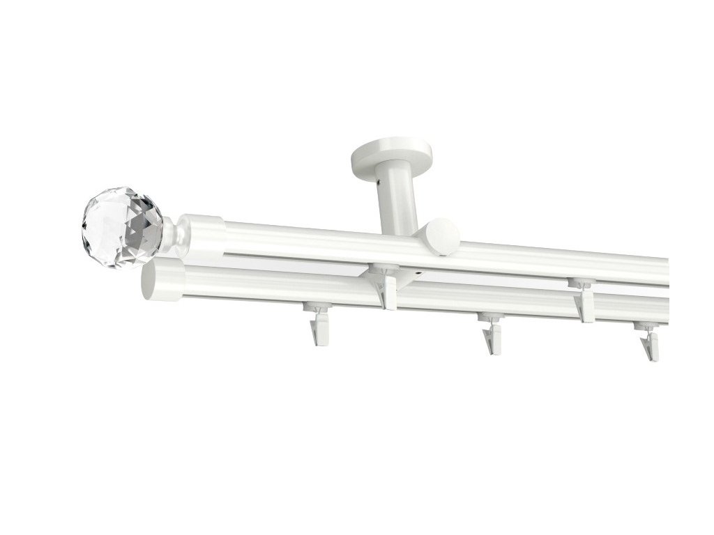 Kovová stropní garnýž moderního vzhledu s kolejnicí a efektní koncovkou. Vhodná prakticky do všech interiérů. Veškeré kombinace naleznete přímo u produktu.