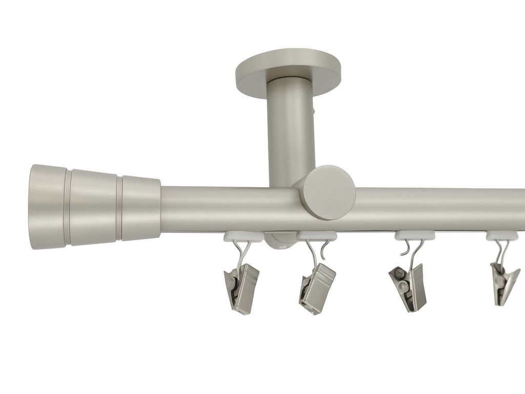 Kovová stropní garnýž moderního vzhledu s kolejnicí a efektní koncovkou. Vhodná prakticky do všech interiérů. Veškeré kombinace naleznete přímo u produktu.